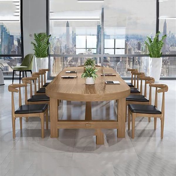 Natural Contemporary Writing Desk Solid Wood Oval Office Desk