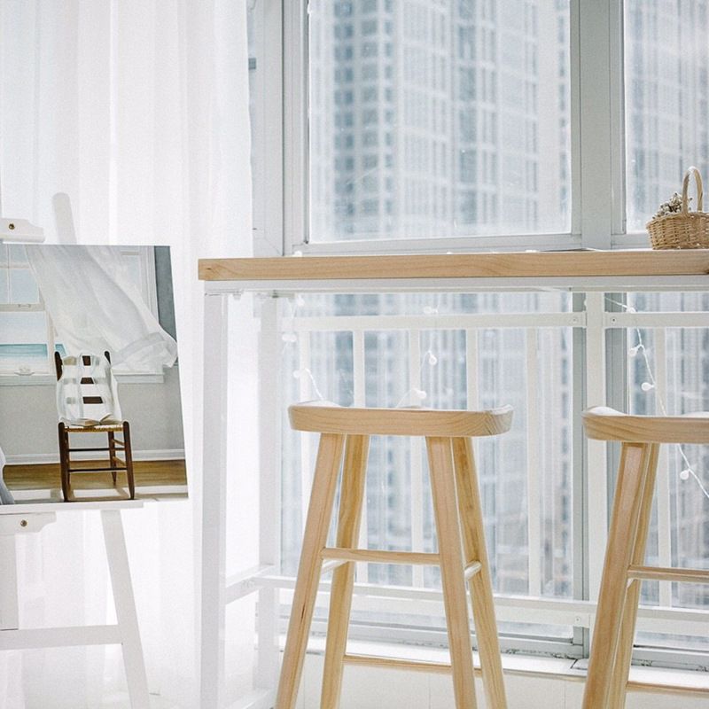Natural Finish Pine Wood Top Bistro Table Glam Bar Table with White Trestle