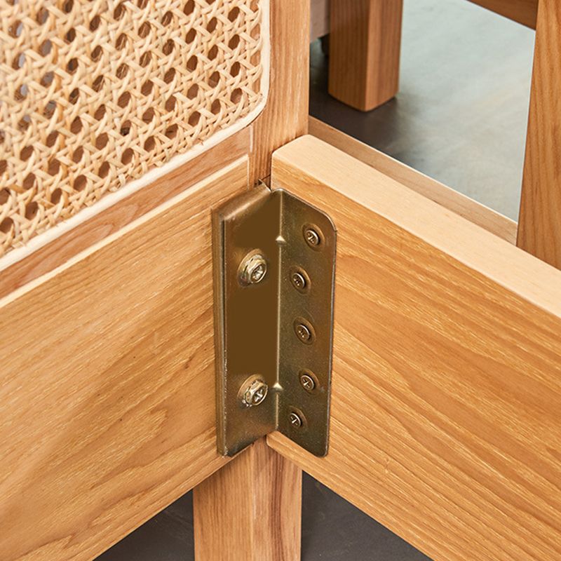 Natural Solid Wood Panel Bed Upholstered Bed Frame with Rattan Accent