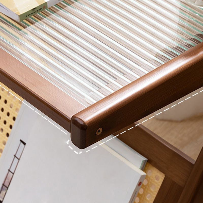 Rectangular Glass Top Side Table Natural/Brown 22.04" Tall End Table