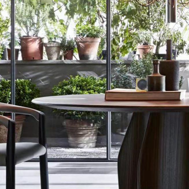 Round Standard Height Dining Table Modern Solid Wood Pedestal Dining Table