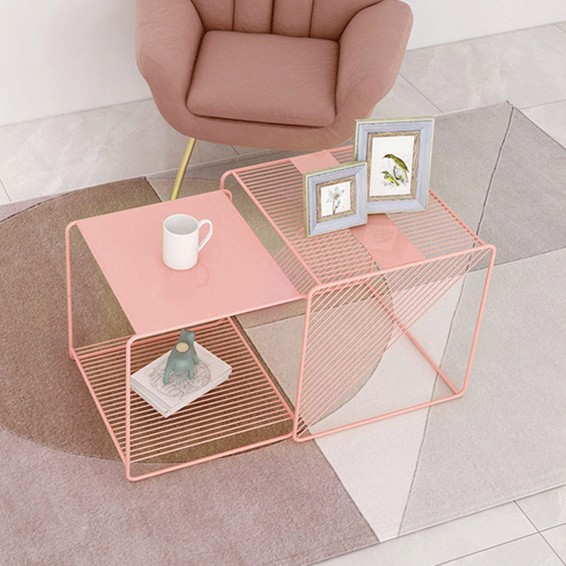 Square Coffee Table Mid-Century Modern with Iron Top and Iron Base