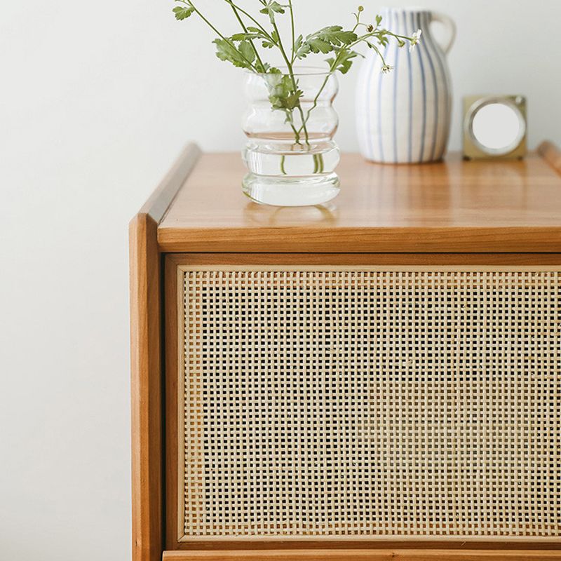 Square Solid Wood Countertop White/black/cherry/wood/walnut Rattan Frame Nightstand