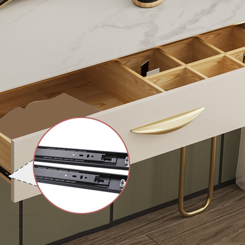 Stone and Metal with Leather Accent Vanity Table in Beige Makeup Desk