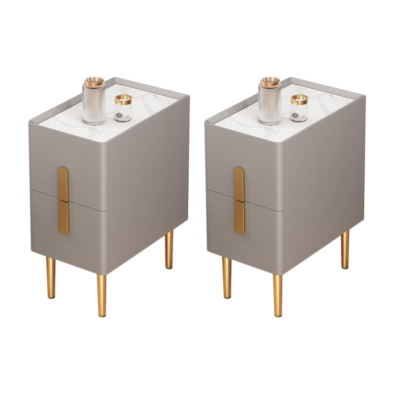 Stone Bedside Cabinet Contemporary Bed Nightstand with 2 Drawers