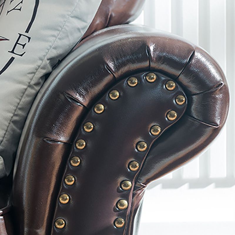 Traditional Living Room Brown Sofa 4-seat Genuine Leather Seating