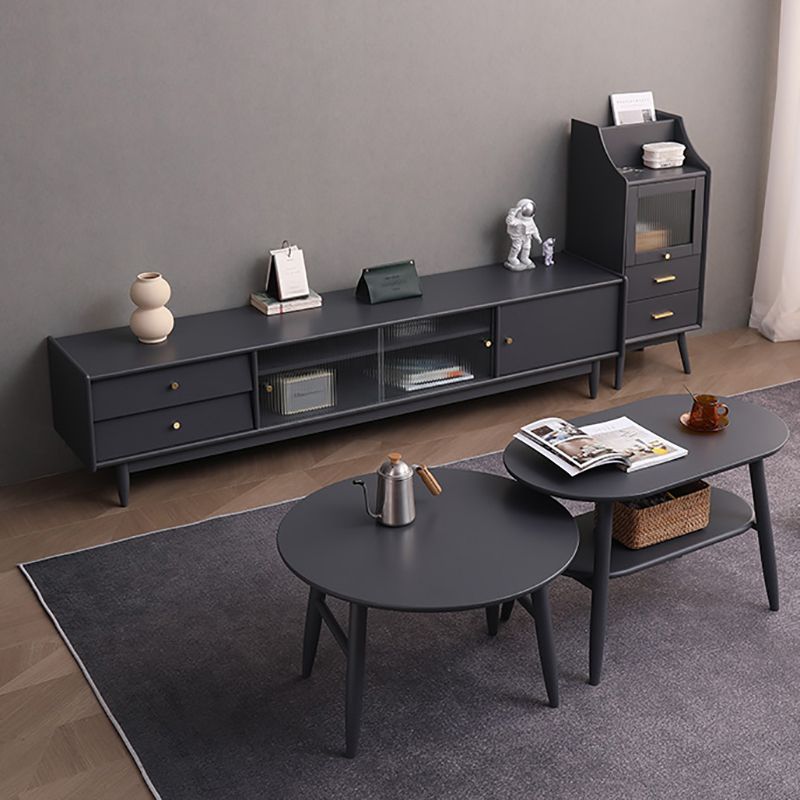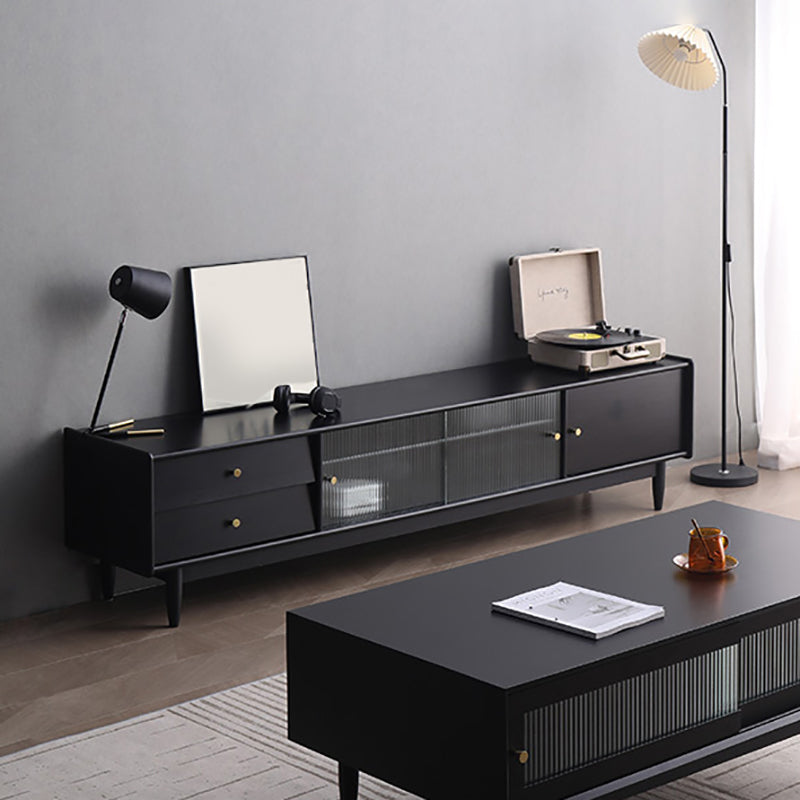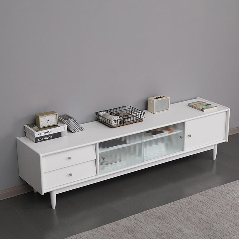 Traditional TV Stand Console with Drawers Rubberwood TV Media Stand