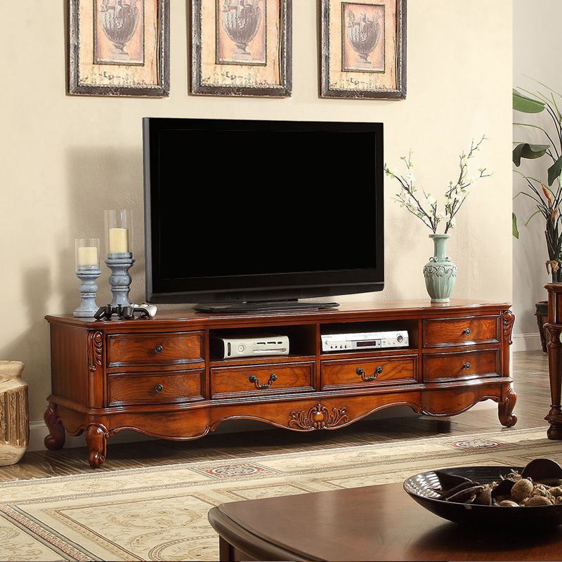 Traditional Wood TV Stand Console Open Storage TV Media Stand with Drawers for Living Room