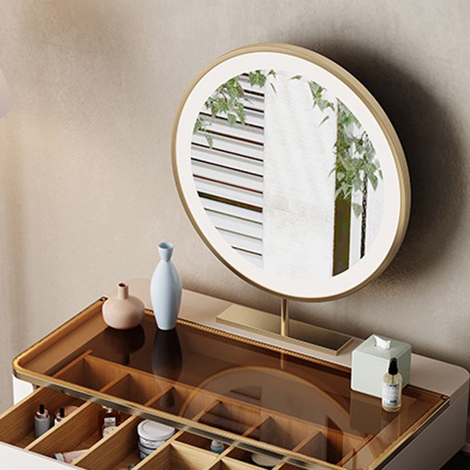 White Make-up Vanity Glass Top Makeup Vanity Desk Table with Drawer