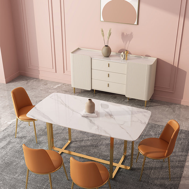 White Modern Style Buffet Table Engineered Wood Dining Buffet with 3 Drawers