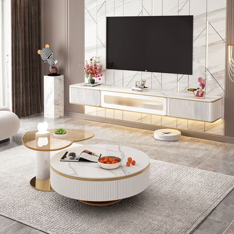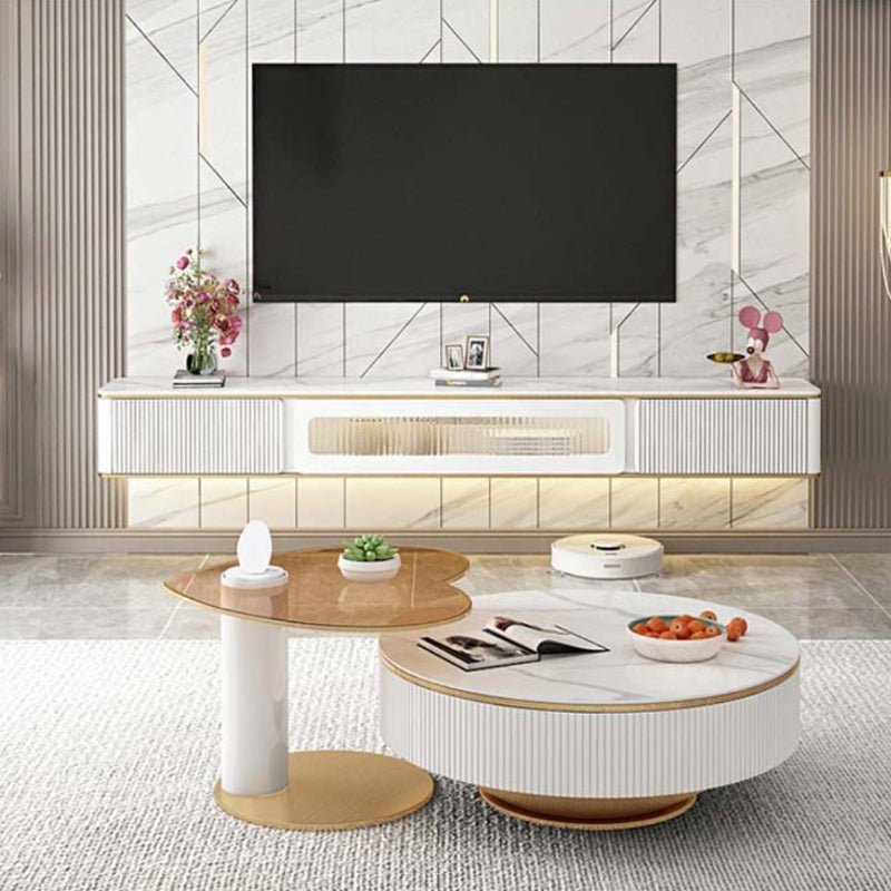 White Stone TV Stand Glam TV Media Stand with Storage for Living Room
