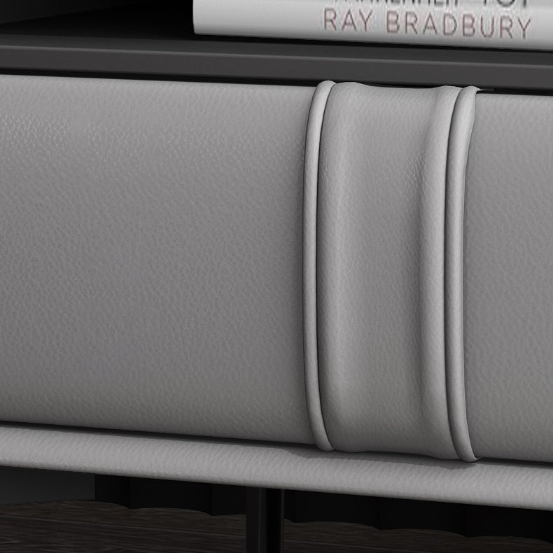 Wooden and Leather Night Table Modern Minimalist Open Bedside Table with Legs