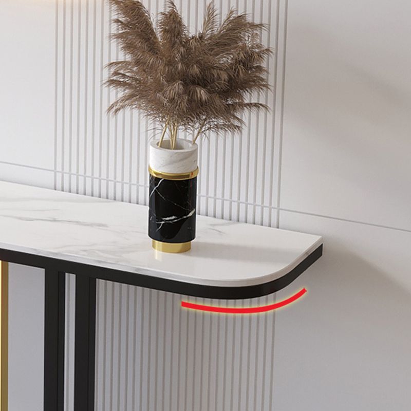 11" Wide Contemporary End Table Stone Half Moon Console Table