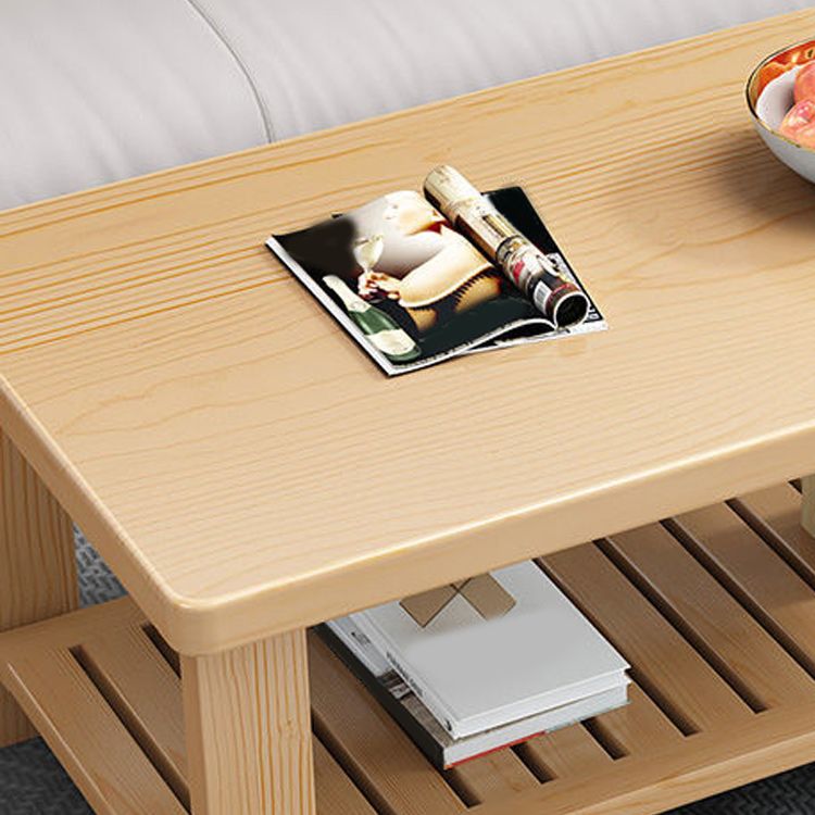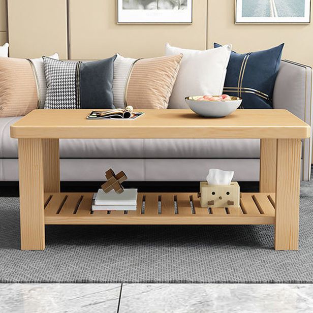 17.7" H Modern Rectangle Wood Coffee Table 4 Legs Cocktail Table with Shelf
