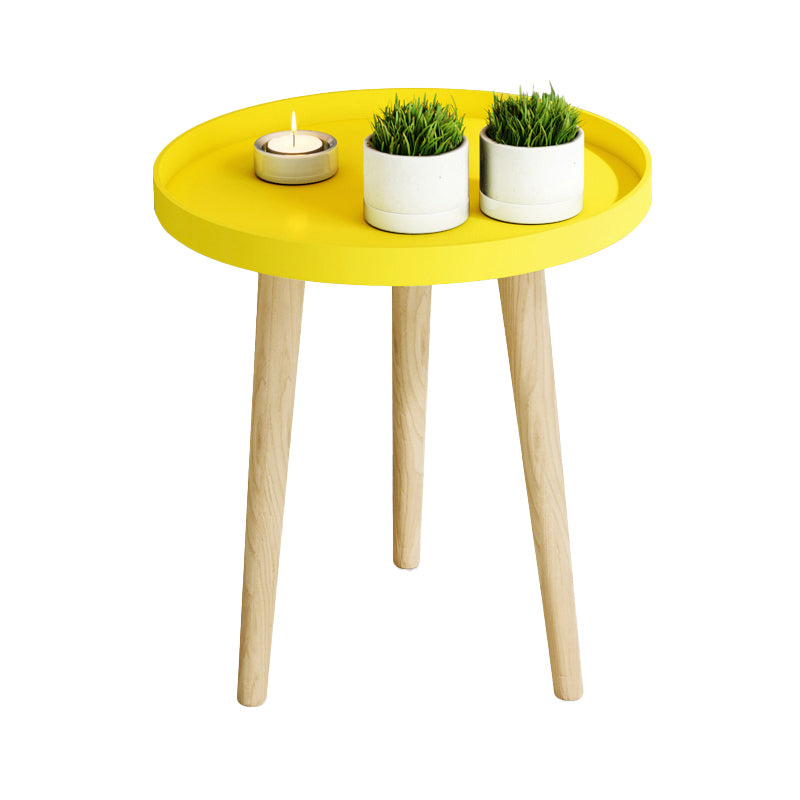 17.71" Tall Plastic Round Top Side Table Wooden 3 Legs End Table