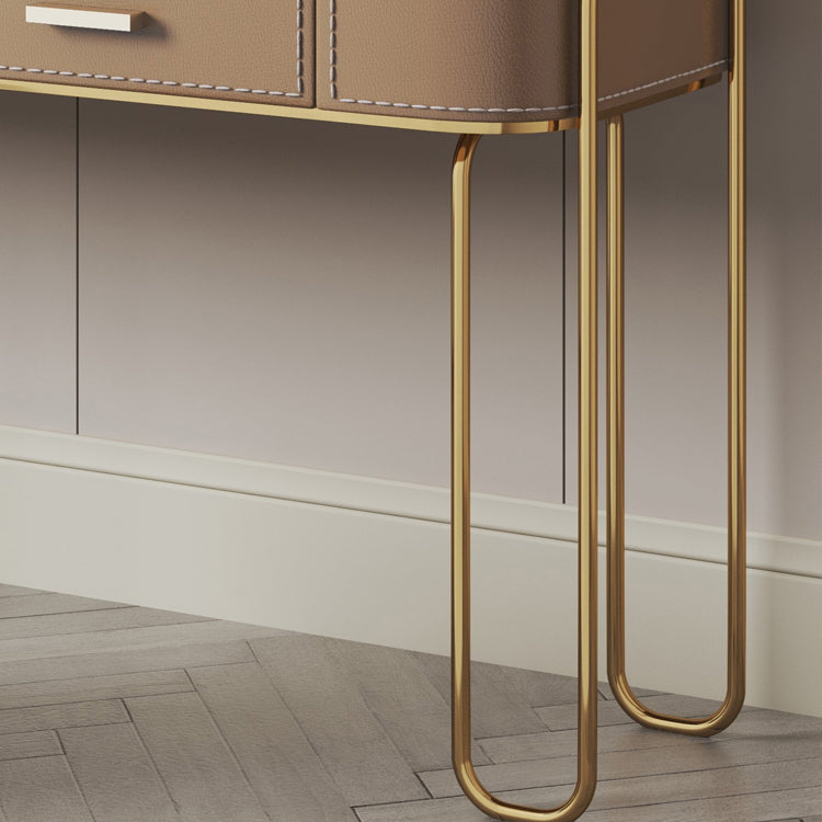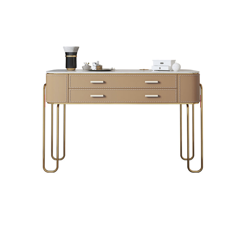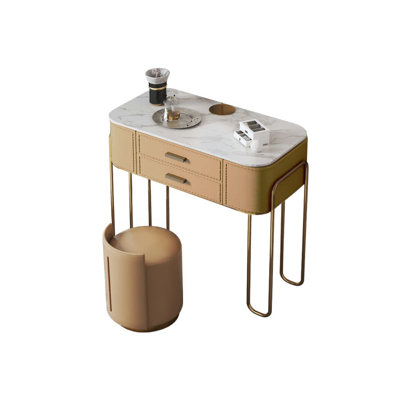 2 Storage Drawers Mirrored Vanity Set Genuine Leather Make-up Vanity