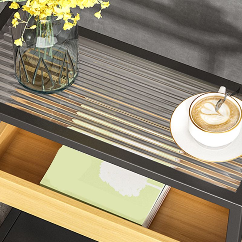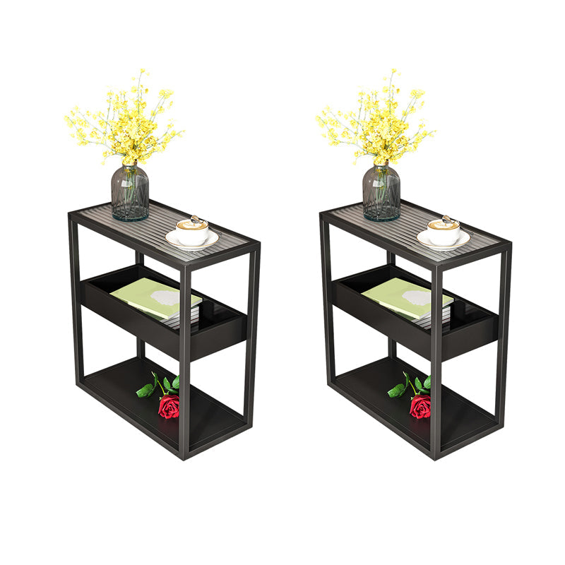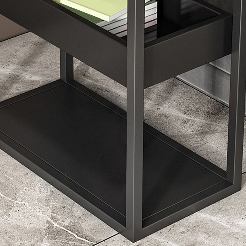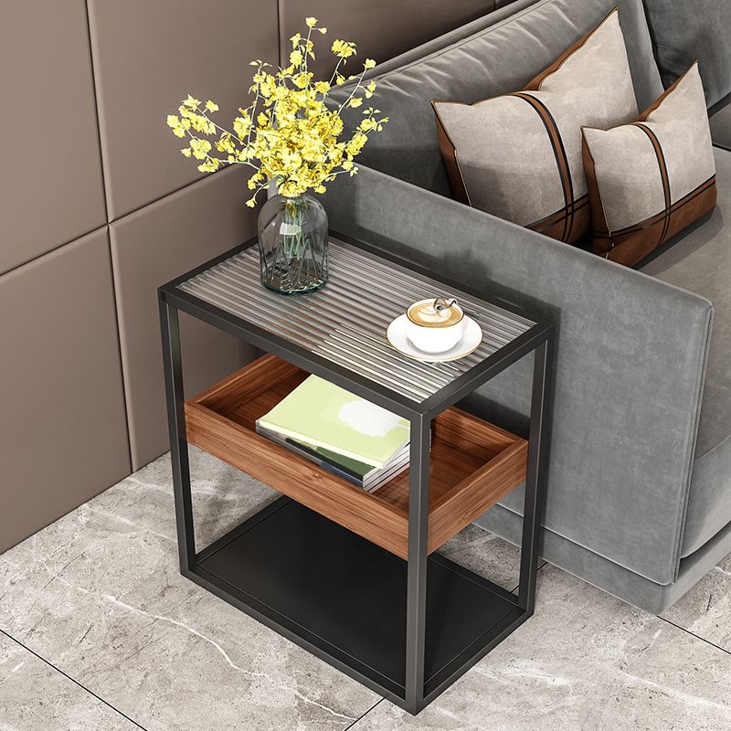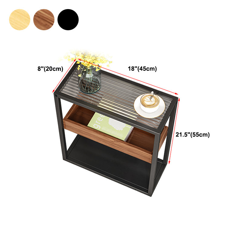 21.6" Tall Modern Rectangular Glass Top Side Table Iron Frame End Table with Shelves