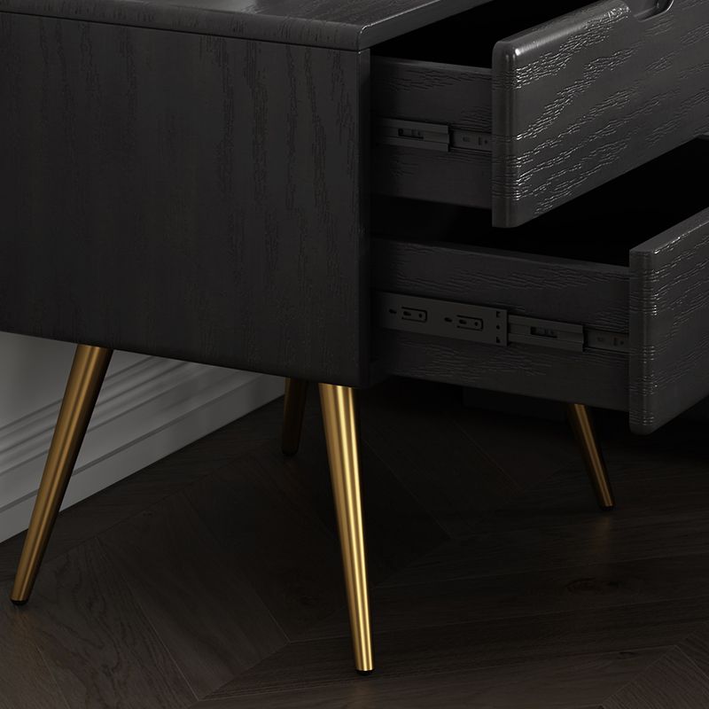 22 Inch Tall Glam Night Table 2-Drawer Storage Solid Wood Nightstand with Legs