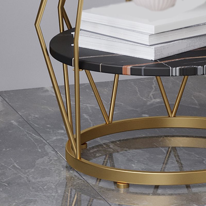 23.6"H Modern Metal Frame Base Slate Round Coffee Table End Table