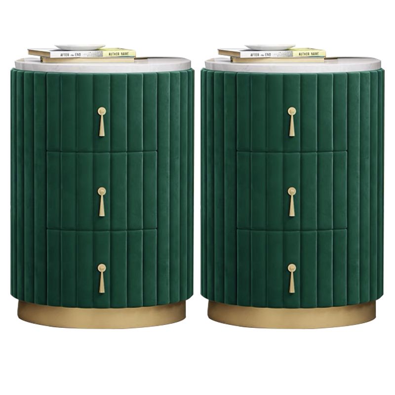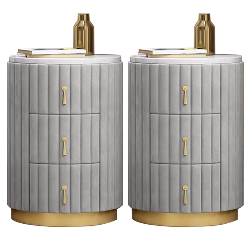 3 Drawers Night Table Nightstand Marble Round Bedside Cabinet Drawers Included