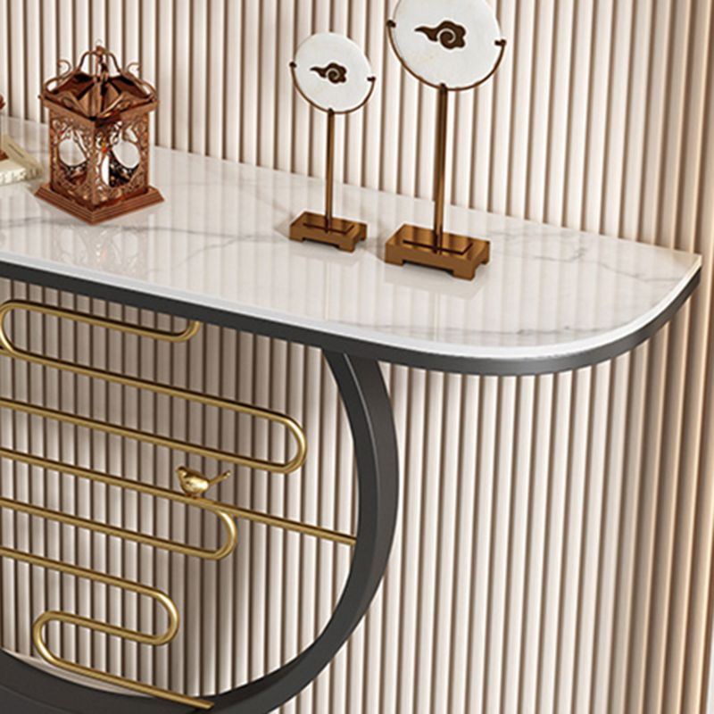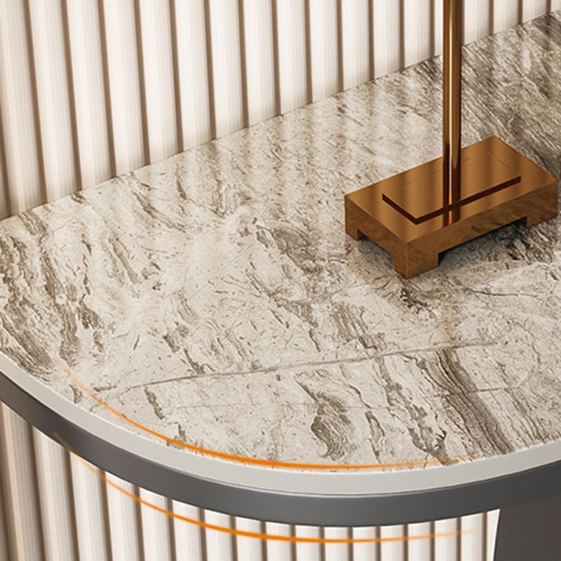 31.5" Tall Stone Console Accent Table Half Moon End Table with Shelf
