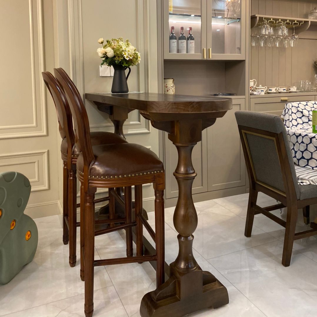 Brown Industrial Style Bar Table Solid Wood Cafe Casual Bar Table