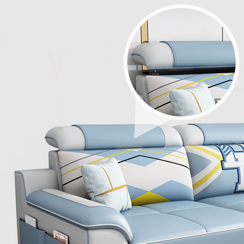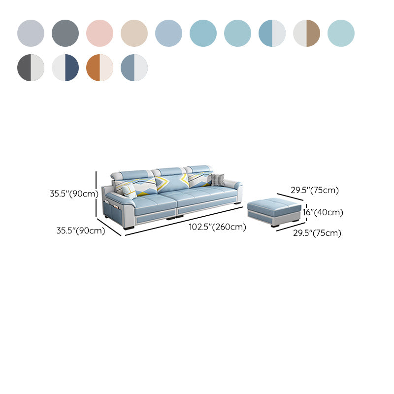 Contemporary Faux Leather Pillow Top Arm Sofa Ottoman Included