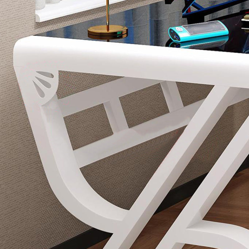 Contemporary Glass-Top Office Desk Antique Finish Computer Desk