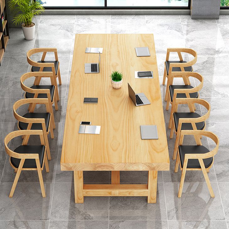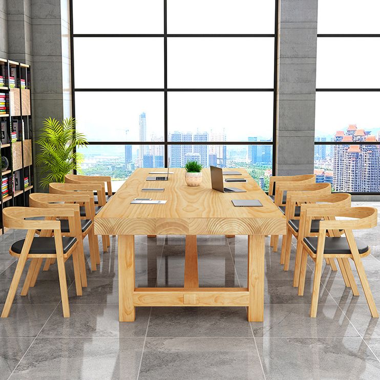 Contemporary Natural Pine Wood Desk Rectangle Wood Base Desk for Office