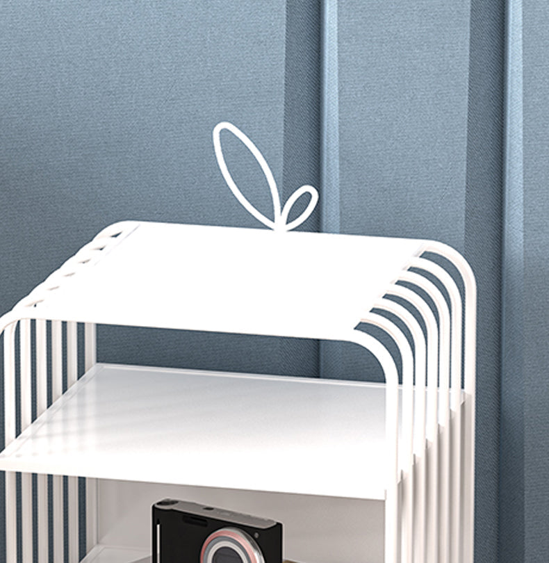 Contemporary Open Storage Nightstand Metal Night Table with 2 Shelves
