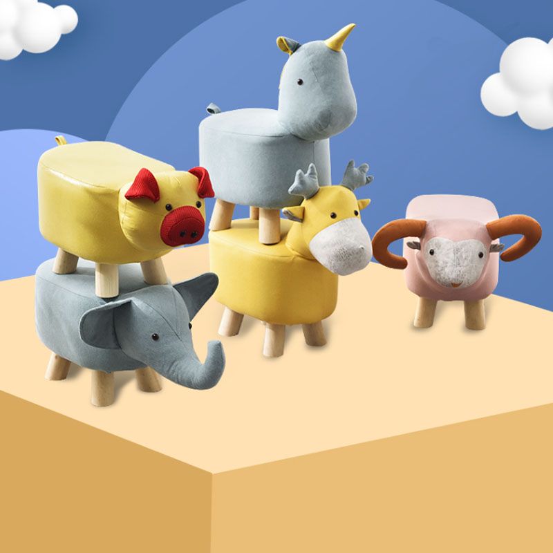 Contemporary Ottoman Faux Leather Solid Wood Frame Upholstered Deer Shape Ottoman