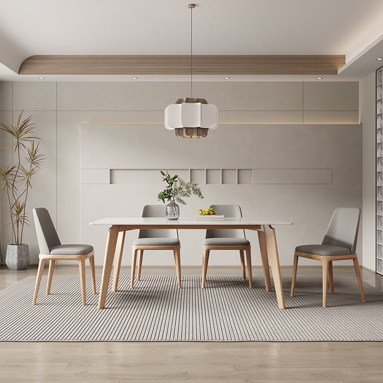 Contemporary Style 1/4/5 Pieces Dining Chairs Set Rectangle Stone Furniture in White