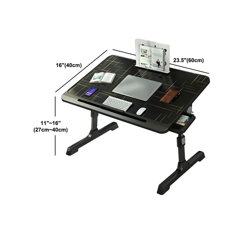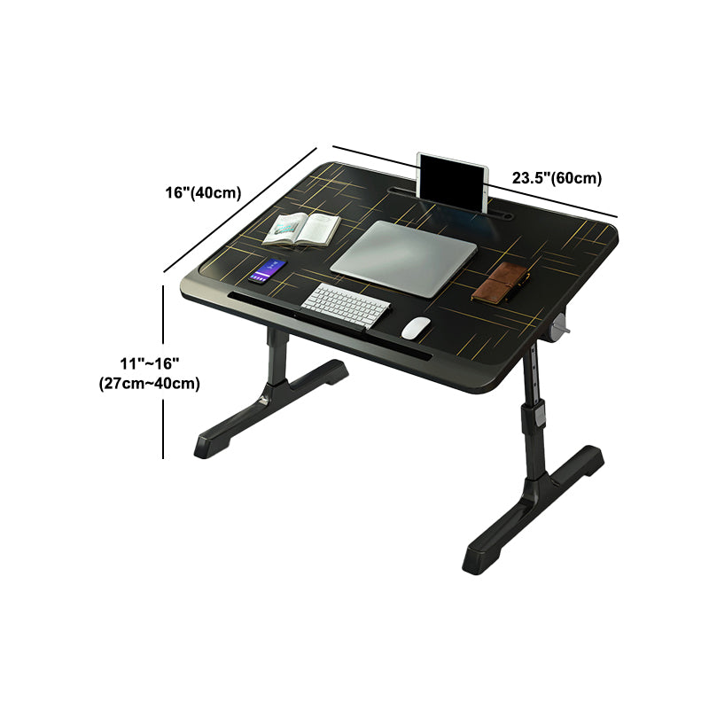 Curved T-Shape Writing Desk Black Folding Adjustable Office Desk Artificial Wood