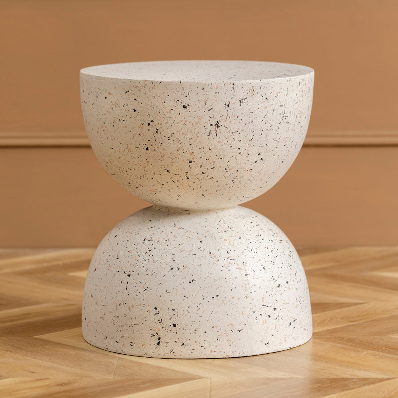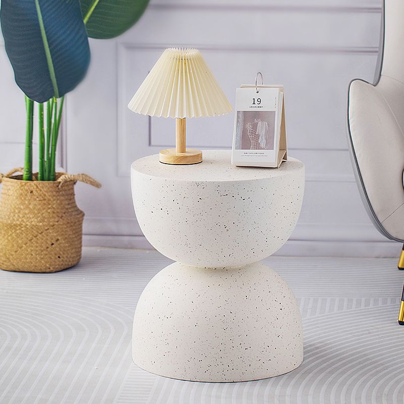 Double Semicircle Shape Side End Snack Table White Cement Corner Table