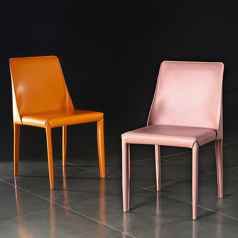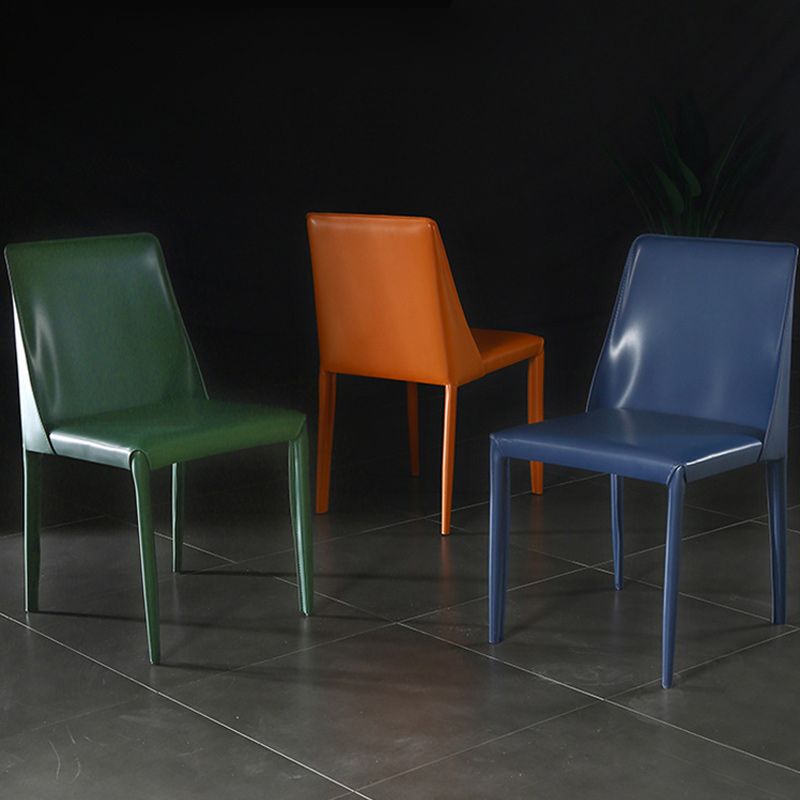Faux Leather Contemporary Home Side Chair Matte Finish Solid Back Dining Chair