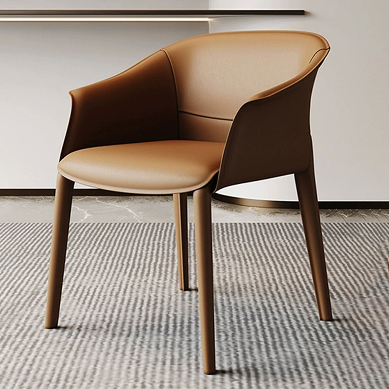 Faux Leather Contemporary Side Chair Matte Finish Solid Back Dining Arm Chair