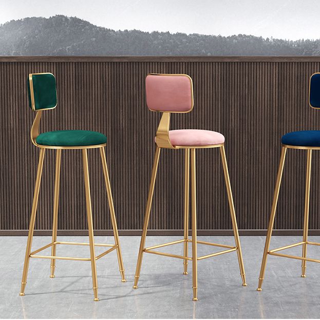 Glam Armless Backrest Counter Stool Iron Dining Room Bar Stool with Cushion