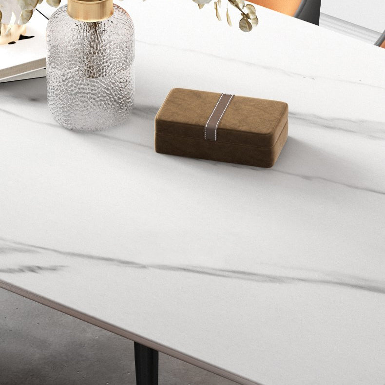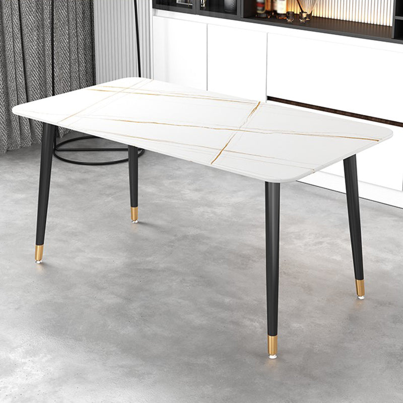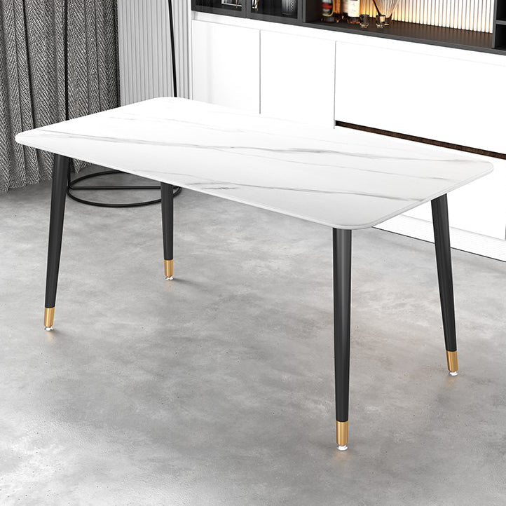 Glam Black Iron Dinette Set 1/2/5/7 Pieces Rectangle Sintered Stone Top Dining Table Set