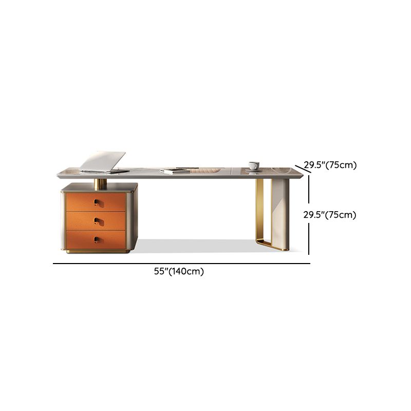 Glam Slate Top Office Desk Modern Rectangle Writing Desk with 3 Drawers
