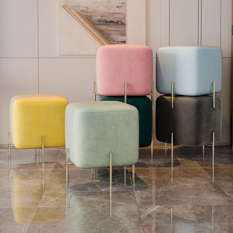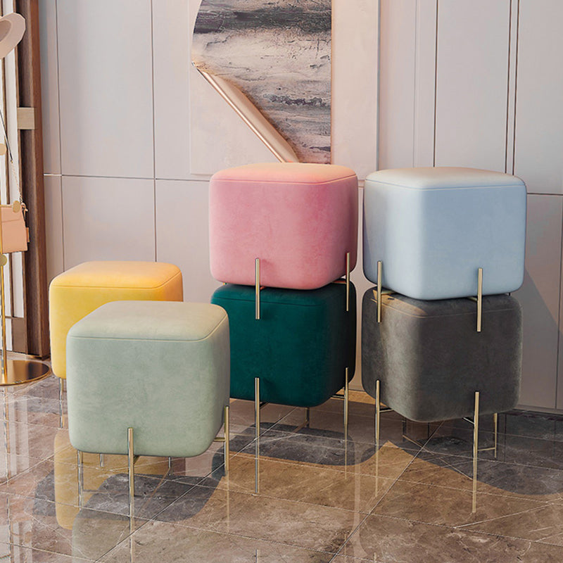 Glam Square Target Pouf Plain Velvet Metal Frame Water Resistant Couch Ottoman