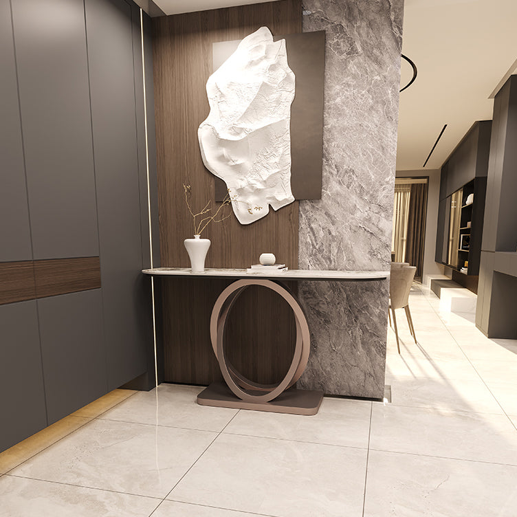 Glam Stone Console Table Half Moon Console Accent Table for Hall