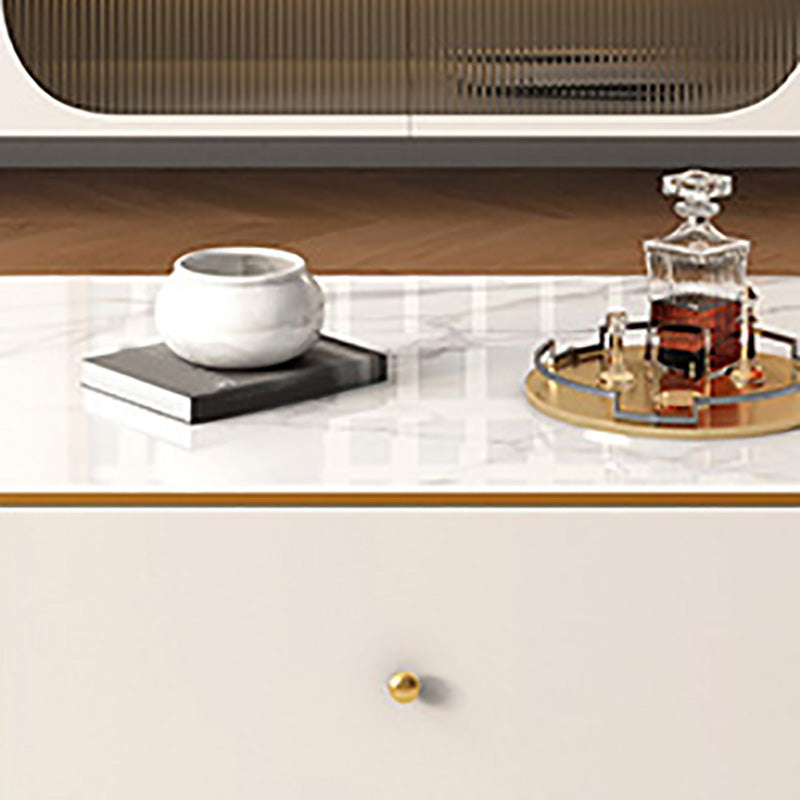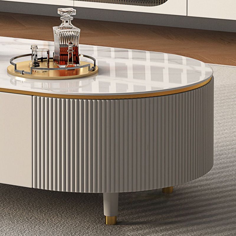 Glam Stone Oval Single White 4 Legs Coffee Table with Drawers