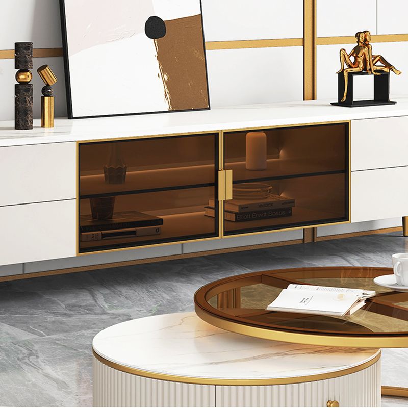 Glam Stone TV Console White TV Stand with Drawers and Storage