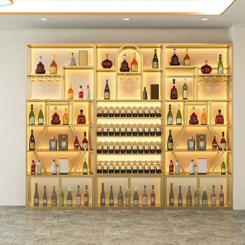 Glam Style Wine Bottle Rack Metal Wine Rack with Stemware Holder