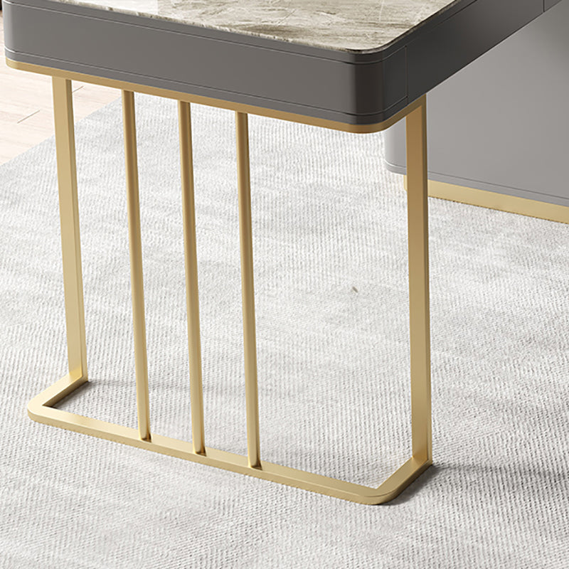 Grey Drawers Writing Desk Glam Stainless Steel and Stone Office Desk Rectangular