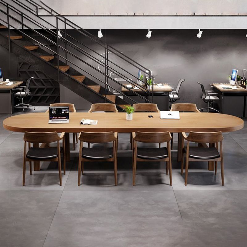 Industrial Oval Writing Desk Solid Wood Sled Base Office Desk