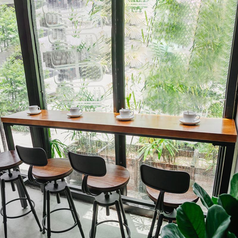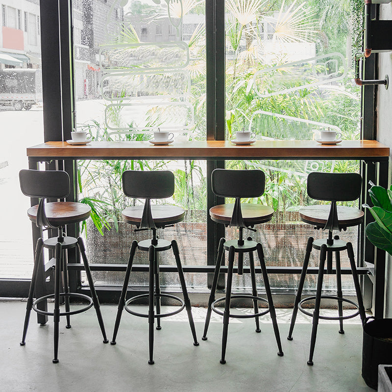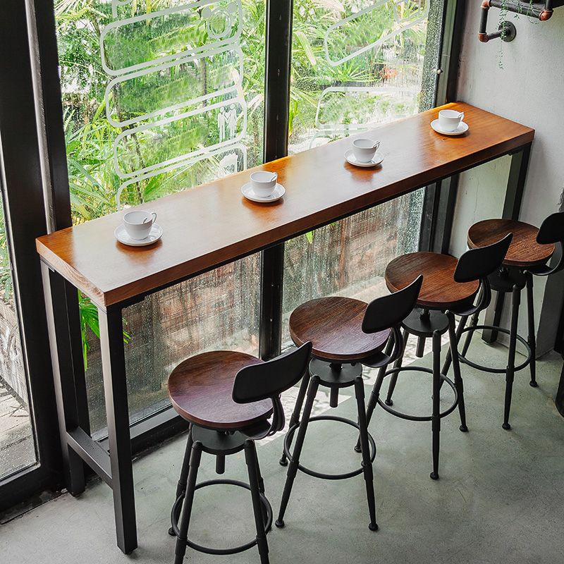 Industrial Rectangle Bar Table Pine Solid Wood Bistro Bar Desk with Footrest