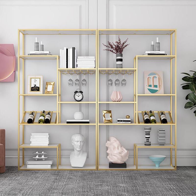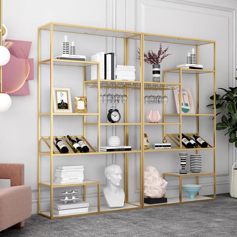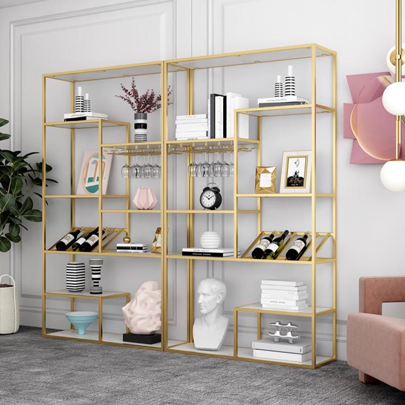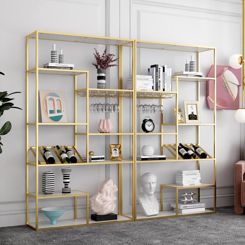Metal Floor Wine Bottle & Glass Rack Modern Wine Rack Kit with Shelf