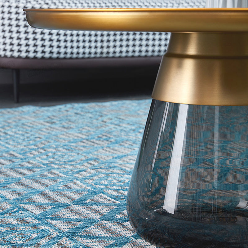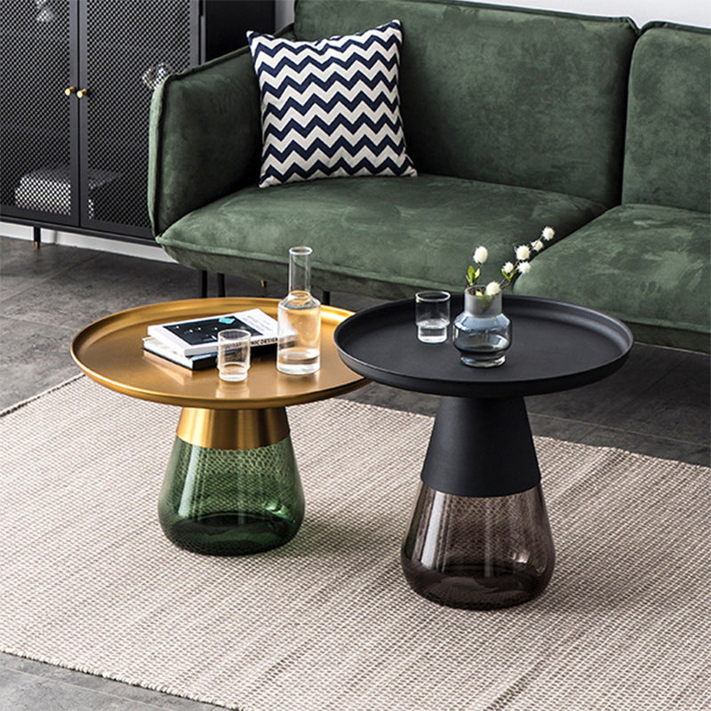 Mid-century Modern Style Round Metal Table with Glass Bottom Coffee Table