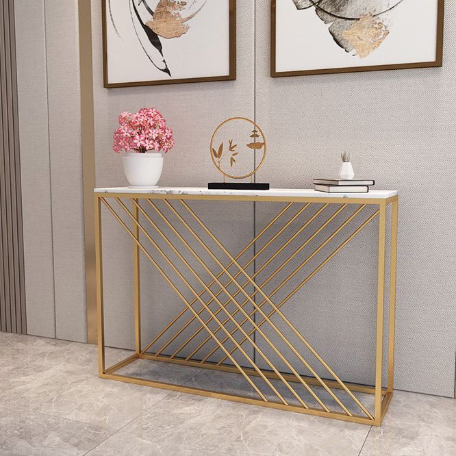 Modern Console Accent Table Antique Finish Rectangle Console Sofa Table in Marble